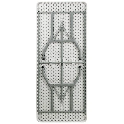 Rectangular folding tables are essential to anyone who setup displays to promote their products or hosts parties regularly. This 6′ long banquet folding table fits well in classrooms for team building exercises and computer lab work. The table can fit up to 8 people for collaborative learning sessions among students. This commercial grade folding table is often used in banquet halls, warehouses, conference centers, and at trade shows. Caterers will have ample space to layout meals for guests to be served, cover up with white linen for a professional appearance. Your floors remain scratch-free with the included protective floor caps. Once you’re done the legs lock underneath the tabletop to be transported and stored away. Easy to clean and store, plastic folding tables are the best and most popular option for any occasion. Although designed for indoor events this party table can be used outdoors on the deck or patio during good weather. Store the table indoors and protect the frame from extreme moisture. Get your ready to use rectangular folding table for your home or business today. Additional Features: Gray Powder Coated Locking Legs with protective floor caps