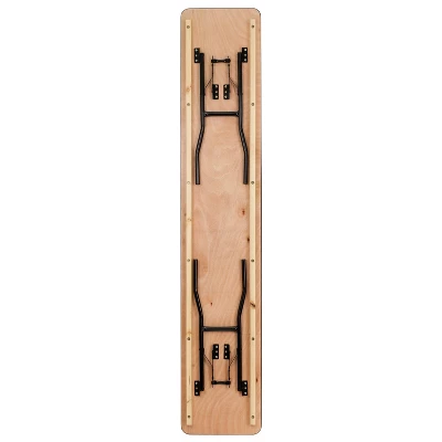 Whether you’re onboarding new employees or conducting the monthly safety training, attendees will need a workspace. This 6′ rectangular wood folding table can be paired with others and set up in rows, classroom style, or in a “U” formation for a conference room look. This seminar table is beneficial in a multitude of settings that include banquet facilities, conference centers and schools. Use in the home for extra dining space, holding your sewing machine or in the laundry room for folding clothes or storing your cleaning supplies. If you don’t have a lot of space for a permanent setup, the legs fold under the table to make storage more convenient and for better portability. The included floor caps protect your flooring. This table is commercial grade to withstand everyday use in the hospitality industry. Additional Features: Black T-Mold Edge Band, Black Powder Coated Wishbone Legs, 18 Gauge Steel Legs, Protective Floor Caps, Designed for Commercial Use