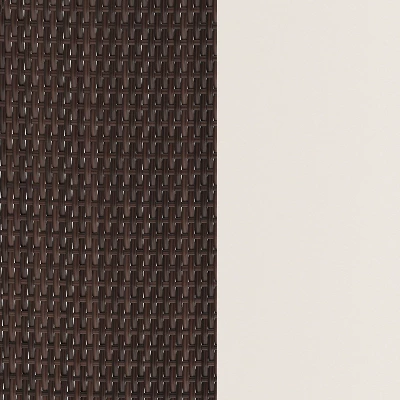 This stylish brown four piece grouping with its beige all-weather cushions includes a loveseat, two armchairs and matching coffee table. Each piece has a durable metal frame and an interlocking woven rattan design. The loveseat and chairs feature gently-curved, fixed arms, straight backrest and four straight square legs. The weather resistant cushions invite you to settle in and stay awhile. If you are looking to create your own oasis, this grouping can assist especially with the coffee table as a center piece, perfect for entertaining.