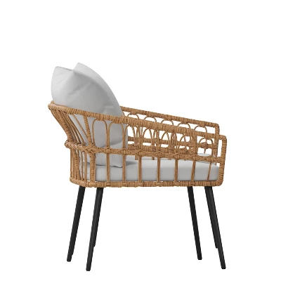 - Boho Indoor/Outdoor Faux Rattan Wicker Patio Chairs, Set of 2