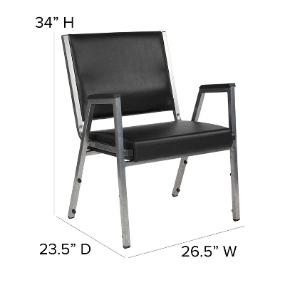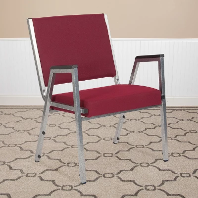 Provide safe seating for all patients in the hospital and healthcare industry with these medical grade reception chairs. Settle in faster with a 21.5″ extra wide seat with thick cushioning while the supportive 18-gauge tubular frame withstands up to 1000 pounds. The arm chair helps users ease into the chair comfortably having the arms for support. Assemble group therapy sessions placing these metal chairs in a circle. These bariatric guest chairs can be used for temporary sessions or setup permanently in your waiting room. For temporary usage, these metal stack chairs stack up to 10 high for storage while the plastic bumper guards safeguard the frame from scratches. If you need seating for your healthcare facility these antimicrobial guest chairs are an excellent choice for your waiting room and patient room. Designed for intensive use this easy to clean chair is optimal for your high traffic environment. Additional Features: CAL 117 Fire Retardant Foam, 18 Gauge Steel Frame, Powder Coated Frame Finish with Plastic Floor Glides, Plastic Bumper Guards protect finish when stacked, Designed for high traffic commercial use