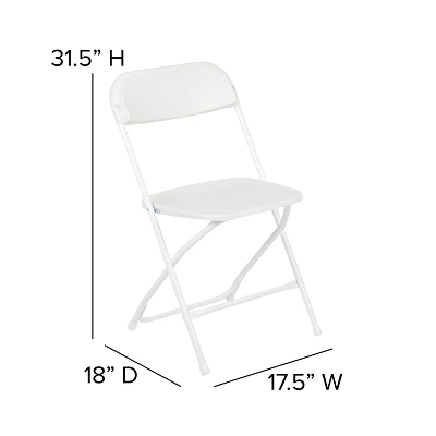 Commercial-grade plastic folding chairs designed to be lightweight but durable. This product is engineered and built with premium materials that will withstand heavy duty use for event, business and home usage. These folding chairs will nest easily to stack 50 high from the floor and feature a textured contoured plastic seat for the highest level of comfort and security. With a variety of color options you can choose what would best pair with your event needs. This is a commercial-grade on-demand seating solution convenient for weddings, school functions, barbecues, game night, and catering events. Stay comfortable during social events with the gentle contour shaped seat and back. Folding chair highlights: – Ready-to-use with no assembly required – Hassle free stackable storage – Textured seat designed for maximum comfort and security – Floor caps to prevent surface and flooring damage – 650LB weight capacity These low-maintenance party event chairs wipe down easily after luncheons and stack neatly for storage or floor maintenance. Make a smart investment by purchasing multiple plastic folding chairs for your rental business, waiting room or corporate training rooms. Purchase our folding chair truck for quick and easy set up and take down.