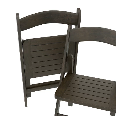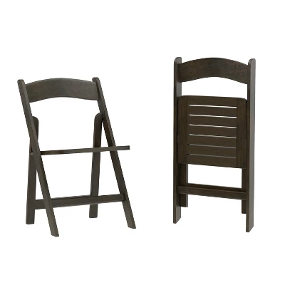 Dazzle your friends and family during your next dinner party or deliver a warm, inviting presentation to your business with this set of two wood folding chairs that combines sophistication with functionality, enhancing any room or event space. The perfect fit for your kitchen or dining room at home, these chairs are also rated for commercial use, so you can rely on their versatile design to bring style and comfort to your restaurant, bar, bistro, lounge, coffee shop, café, deli, or event space. Crafted from solid beechwood with a robust mortise and tenon construction, these chairs are built for durability and stability. The curved backs provide comfort for extended periods to keep your guests relaxed and engaged during weddings, conferences, or luncheons. An easily foldable design allows for simple, space-saving storage and welcome portability to move and transport your chairs hassle-free. Each chair boasts a static weight capacity of 300 lbs., accommodating a variety of users while maintaining structural integrity. Plus, fixed floor glides are designed to protect your hard flooring surfaces from damage, enabling you to freely and confidently move your chairs around your space. No assembly is required, saving you from the need to waste time and energy on a tedious setup process. Clean up is a breeze – Simply wipe with a damp cloth to keep them looking pristine. Whether you’re furnishing a cozy home dining area or an elegant commercial venue, this set of two folding chairs is an excellent choice for style and convenience.
