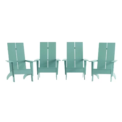 Furnish your lounge space with a fresh new take on a timeless classic with this set of 2 modern style Adirondack style chairs. The streamlined back and arms give this patio chair a sleek profile that will complement any décor. The dual slat back boasts an unusual silhouette of clean, straight lines that look more modern than classic, making it an eye-catching addition to any backyard. Outdoor furniture takes a lot of punishment so durability is key when making a purchase. Constructed of weather-resistant polystyrene, this wood-like substance was designed to hold up in many environments and is strong enough to accommodate users up to 350 pounds static weight. Stainless steel hardware securely fastens this chair together and is weather resistant for long-lasting performance. Unlike traditional wood chairs there is no back breaking sanding, painting, or sealing and this low maintenance porch chair won’t rot, peel, or splinter. Best of all, this adirondack lounge chair can be easily cleaned with water and a neutral detergent. These all-weather adirondack chairs look modern but retain the timeless comfort Adirondack chairs are known for. Pair these chairs with our all-weather poly resin wood adirondack ottoman footrest for total comfort.