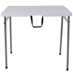 Flash Furniture 2.79-Foot Square Bi-Fold Granite White Plastic Folding Table With Carrying Handle